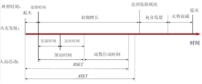 人员安全疏散分析的性能判定标准为:可用疏散时间(ASET)必须大于必需疏散时间(RSET)。